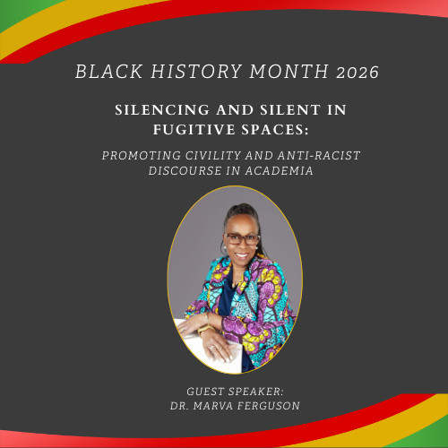 In recognition of Black History Month, TRU welcomes Dr. Marva Ferguson, associate professor in the Faculty of Child Studies and Social Work at Mount Royal University for their talk, “Silencing and Silent in Fugitive Spaces: Promoting Civility and Anti-Racist Discourse in Academia.”